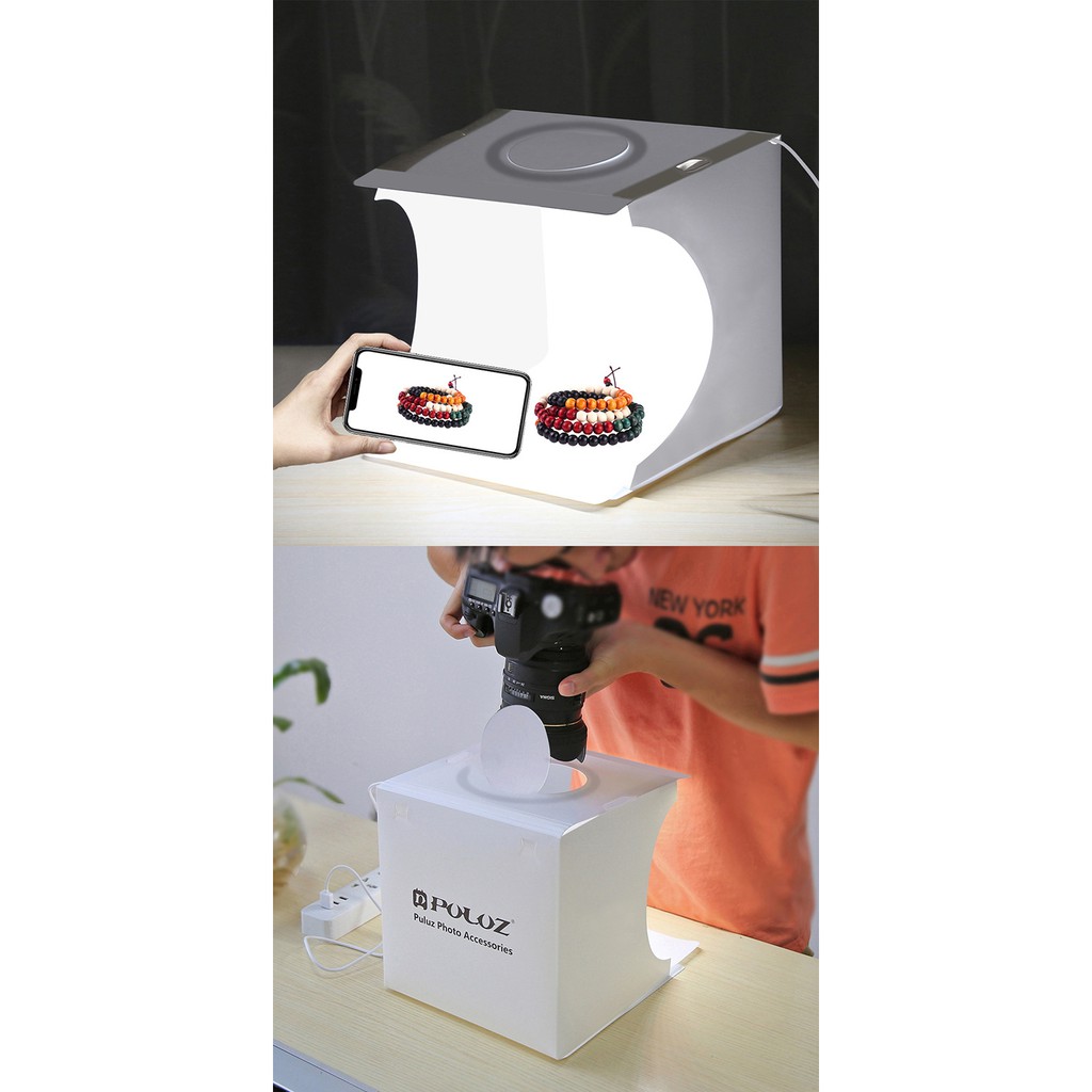 Hộp chụp sản phẩm PULUZ 20x20cm LED vòng siêu sáng 60 bóngPhiên bản tháng 8 năm 2020