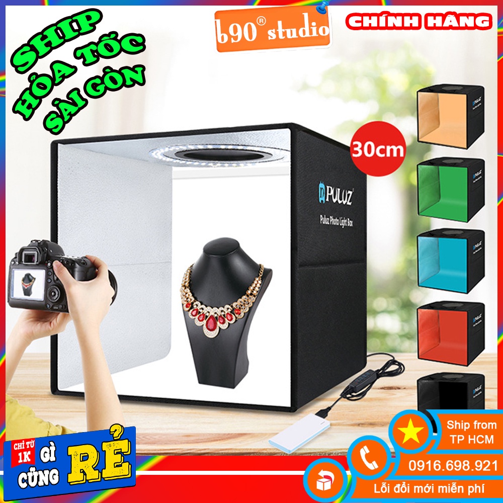 Hộp chụp sản phẩm Puluz 30cm x 30cm x 30cm có kèm đèn led điều chỉnh remote , 6 màu nền