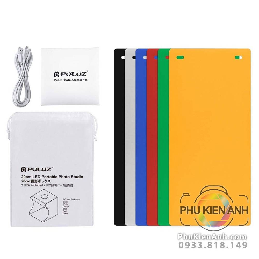 Hộp chụp sản phẩm Puluz 6 màu nền led 20cm 1 led hoặc 2