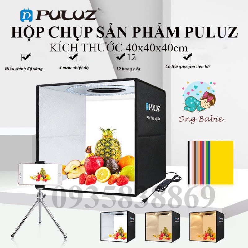 HỘP CHỤP SẢN PHẨM PULUZ 40x40x40 CHÍNH HÃNG 2 DÀN LED SIÊU SÁNG GẤP GỌN TIỆN LỢI Ongbabie.shop