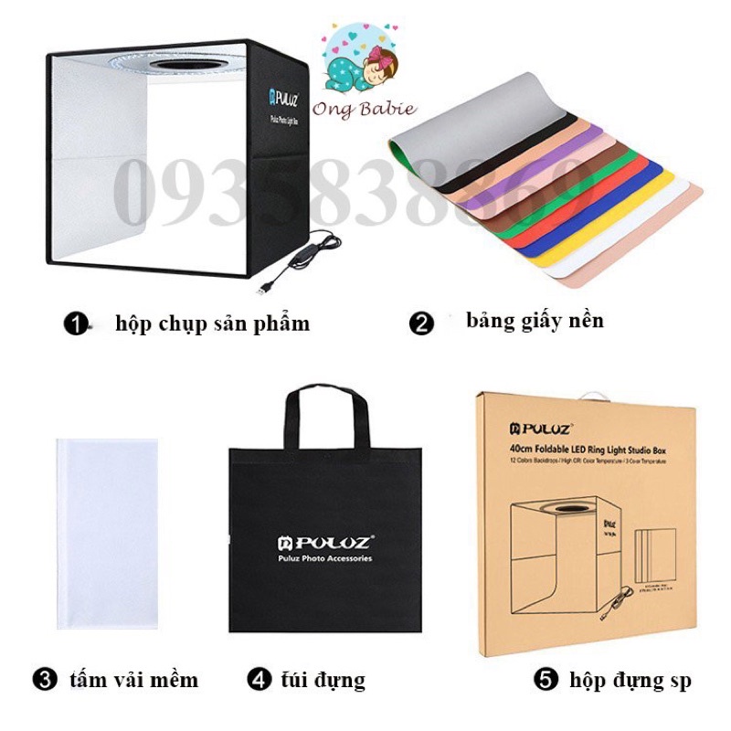 HỘP CHỤP SẢN PHẨM PULUZ 40x40x40 CHÍNH HÃNG 2 DÀN LED SIÊU SÁNG GẤP GỌN TIỆN LỢI Ongbabie.shopHỘP CHỤP SẢN PHẨM PULUZ 40x40x40 CHÍNH HÃNG 2 DÀN LED SIÊU SÁNG GẤP GỌN TIỆN LỢI