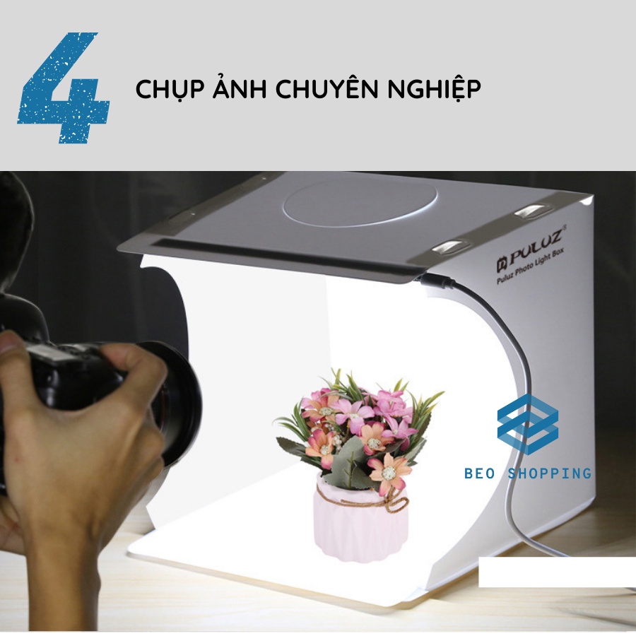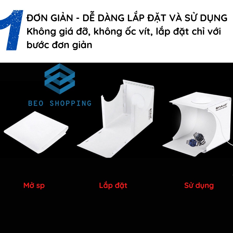 3. Lắp ráp studio ảnh của riêng bạn ở bất kỳ đâu trong vài phút, bạn có thể mở studio hộp đèn LED này và đặt nó trên bất kỳ bề mặt nào để có được phông nền hoàn hảo cho các bài viết nhỏ, chụp ảnh kinh doanh, chụp ảnh sản phẩm .