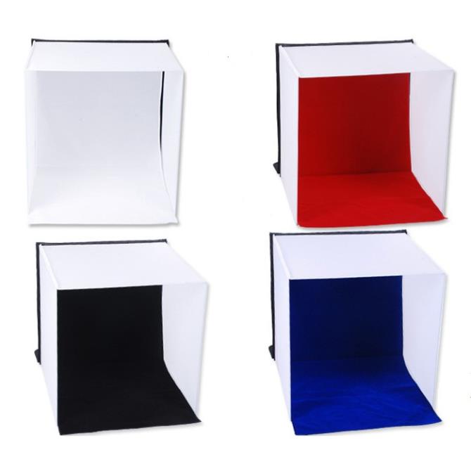 Hộp chụp sản phẩm vuông có kích thước 40x40x40cm với 4 màu sắc phông xanh, trắng, đen, đỏ.THÔNG SỐ KỸ THUẬT: