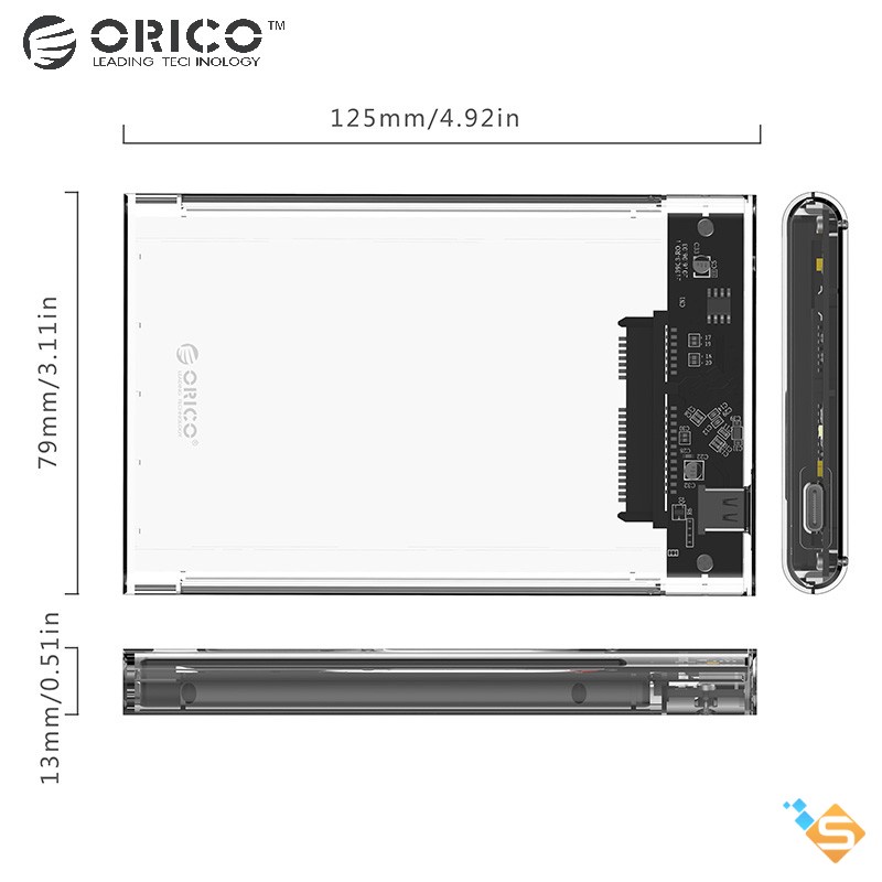 【Hộp đựng ổ cứng 2.5 USB】 -ORICO Vỏ ngoài USB 3.1 2.5 được làm bằng bo mạch trong suốt PC chất lượng cao giúp toàn bộ hộp trong suốt và bạn có thể phân biệt dữ liệu trong ổ cứng của mình một cách dễ dàng mà không cần kết nối máy tính.Bạn có thể quan sát ổ đĩa hoạt động từ bên ngoài.