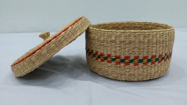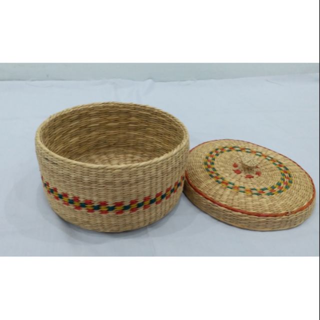 MÔ TẢ:- Hộp cói được đan dáng hình tròn, cùng với nắp đậy.