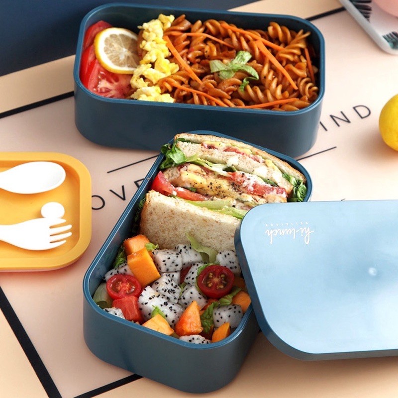Hộp Cơm 2 Tầng Kiểu Nhật- Chịu Nhiệt Cực Tốt (tặng đũa + thìa)