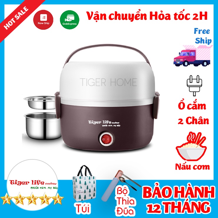 Hộp cơm cắm điện 2,3 tầng HC3 Nấu Cơm Và Hâm Nóng Cao cấp Tiger Life model 2021 Tặng Túi Xách, Bộ Đũa Thìa ..Bh 12 Tháng