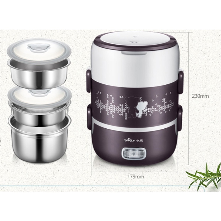 Thiết Bị Điện Gia Dụng > Đồ gia dụng nhà bếp > Nồi cơm điện || Hộp cơm cắm điện 3 tầng Bear DFH-S2123, dung tích 2.0 lít, nấu chín, hâm nóng và giữ nhiệt, sử dụng inox 304 cao cấpCòn hàng