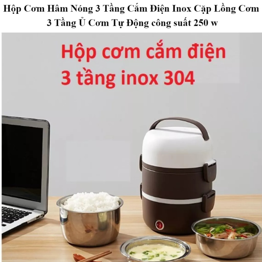 Hộp Cơm Cắm Điện 3 Tầng Inox 304 Vừa Nấu Cơm Vừa Hâm Nóng Siêu Tốc Đa Năng Mẫu Mới Loại Xịn