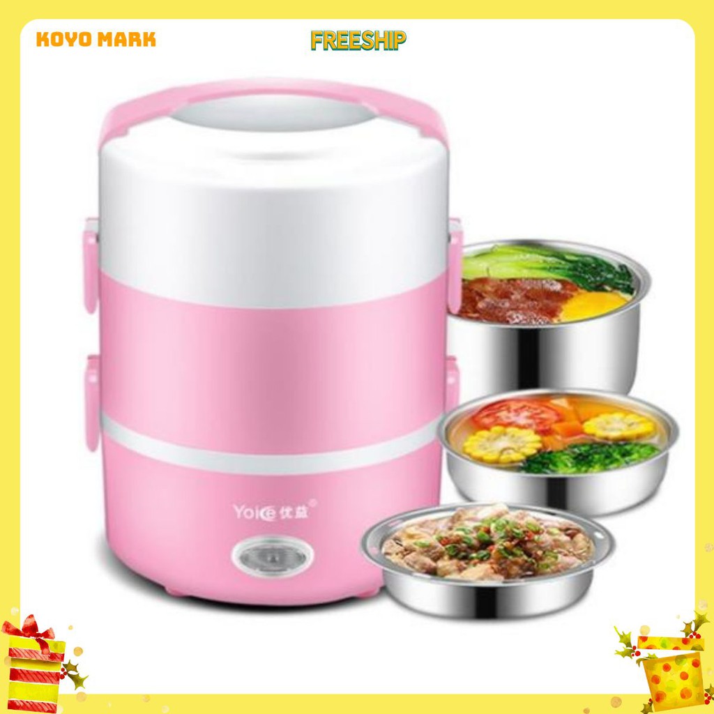 Hộp cơm cắm điện 3 tầng Yoice Y-DFH3, dung tích 2.0 lít, nấu chín, hâm nóng và giữ nhiệt cho thức ăn, dùng inox 304