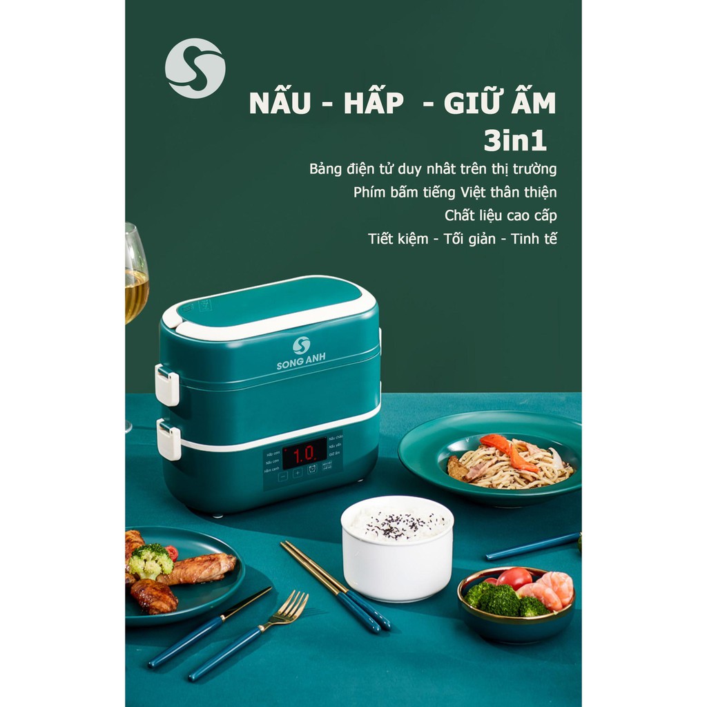 Thiết Bị Điện Gia Dụng > Đồ gia dụng nhà bếp > Nồi cơm điện || Hộp Cơm Cắm Điện 3 Trong 1 : Nấu, Hấp Luộc , Hâm Nóng Thức Ăn Song Anh, Hộp Cơm Văn Phòng Bát Sứ Cao CấpCòn hàng