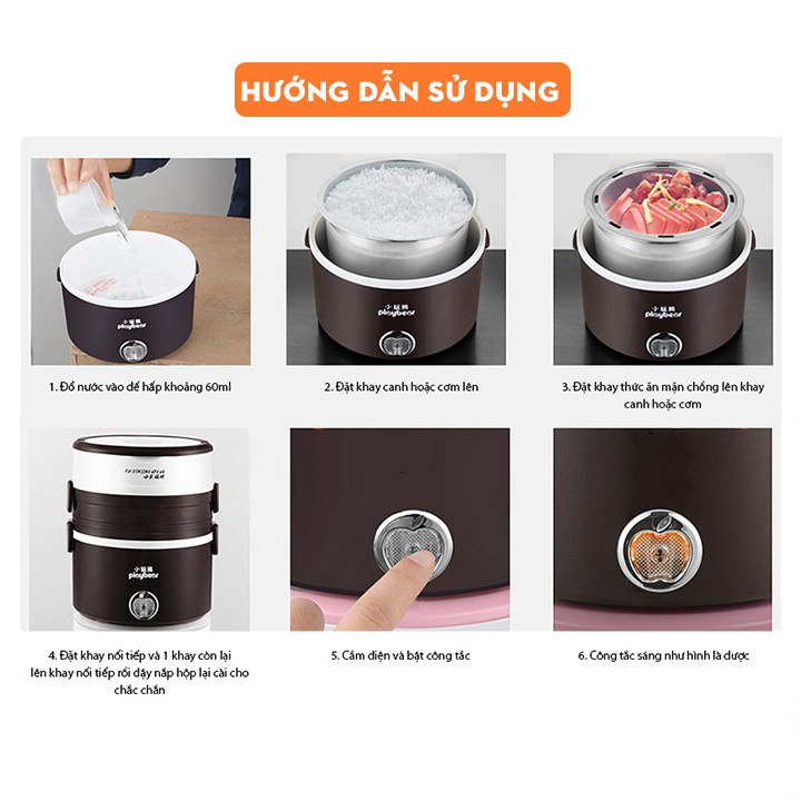 Các bước hướng dẫn sử dụng Hộp Cơm Cắm Điện 3-4 Tầng, 4 Khay INOX: