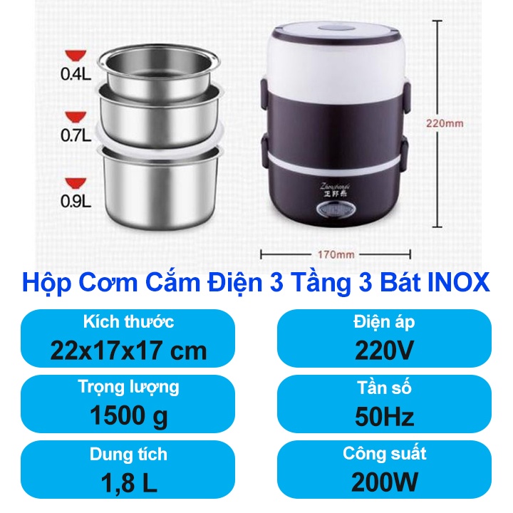 Thông số kỹ thuật sản phẩm Hộp Cơm Cắm Điện 4 Khay INOX Tiện Lợi, Hâm Nóng, Nấu Cơm Nhanh Chóng: