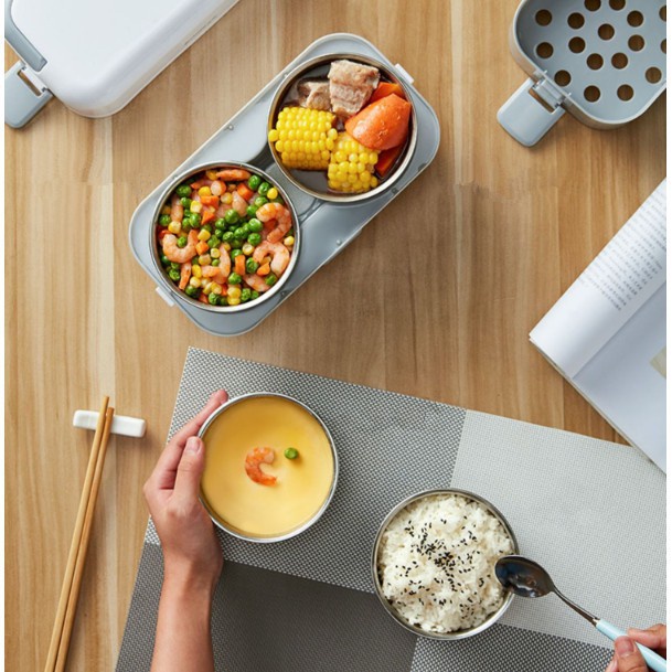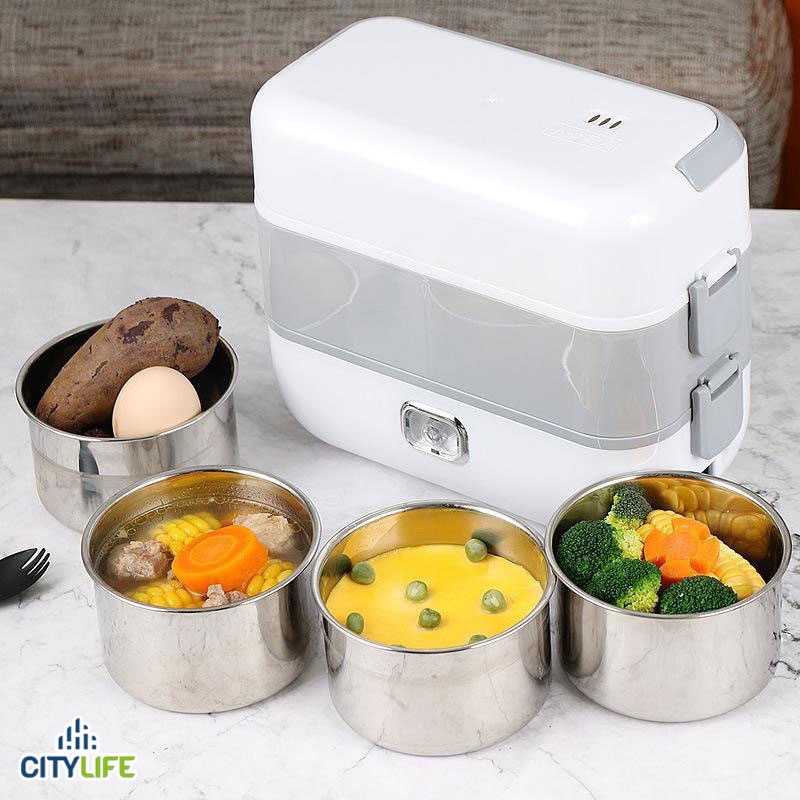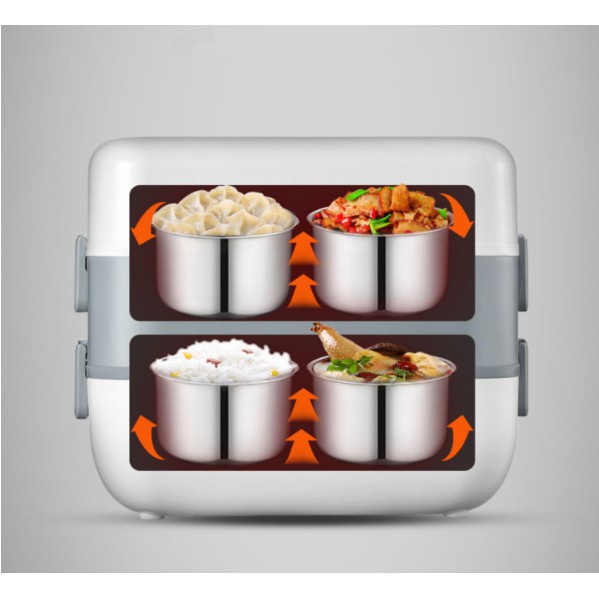 Hộp cơm cắm điện đa năng, hộp cơm hâm nóng văn phòng tự nấu chín thức ăn với 4 Hộp InoxMột sản phẩm tiện lợi và đa năng cho những bạn thường dậy muộn và không kịp nấu thức ăn chín mang đi làm thì với chiếc hộp cơm này bạn chỉ cần sơ chế thực phẩm, phân chia vào từng hộp và bấm nút, nó sẽ giúp bạn làm chín nhiều món ăn cùng lúc.