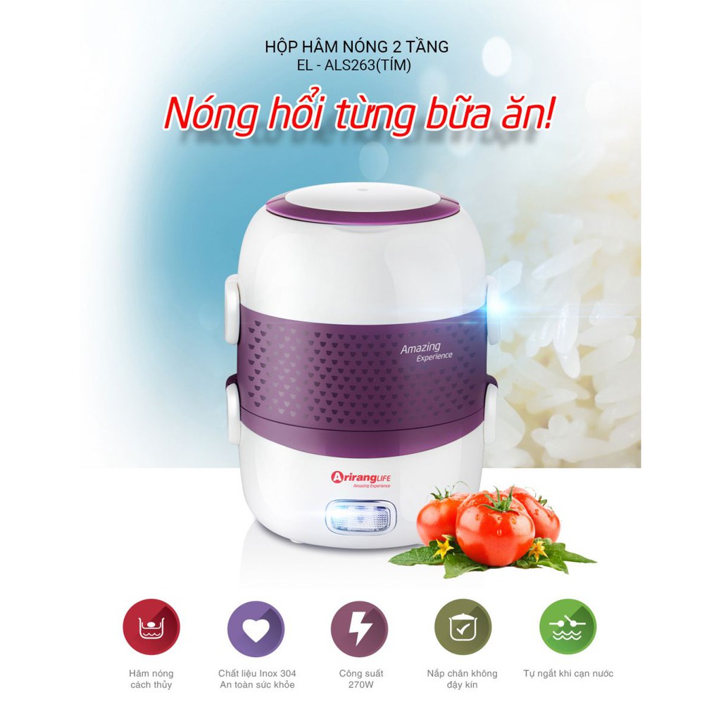 Thiết Bị Điện Gia Dụng > Đồ gia dụng nhà bếp > Nồi cơm điện || [Mã ELHADEV giảm 4% đơn 300K] Hộp cơm cắm điện + hâm nóng 2 tầng Arirang Life EL-ALS263Còn hàng