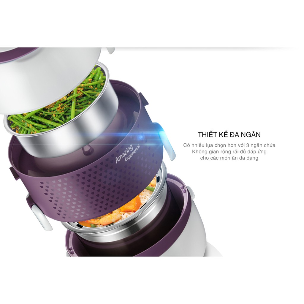 Thiết Bị Điện Gia Dụng > Đồ gia dụng nhà bếp > Nồi cơm điện || Hộp cơm cắm điện + hâm nóng 2 tầng ArirangLife EL-ALS263 (Tím)Còn hàng