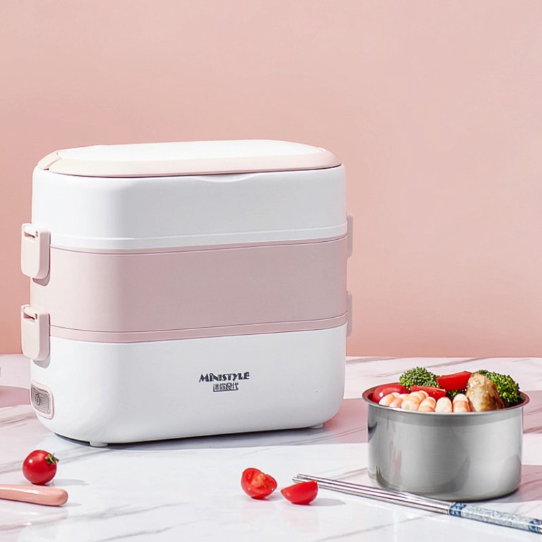 Hộp cơm cắm điện hâm nóng, 2 tầng 4 ngăn, công suất 200W đa chức năng nấu cơm, hầm, hâm_VimartMột sản phẩm tiện lợi và đa năng cho những bạn thường dậy muộn và không kịp nấu thức ăn chín mang đi làm thì với chiếc hộp cơm này bạn chỉ cần sơ chế thực phẩm, phân chia vào từng hộp và bấm nút, nó sẽ giúp bạn làm chín nhiều món ăn cùng lúc.