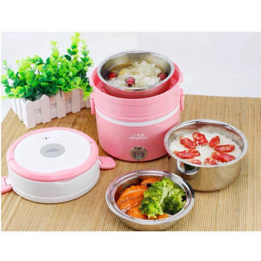 Hộp cơm hâm nóng cắm điện inox 3 tầng Playbear DFH2019