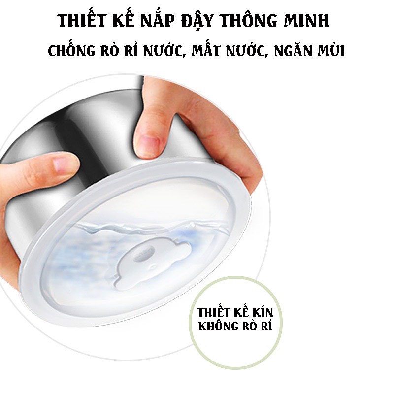 ⚡ 2 khay inox chuẩn 304 ( tổng 3 ngăn ) là: 0.7 lít, 0.5 lít