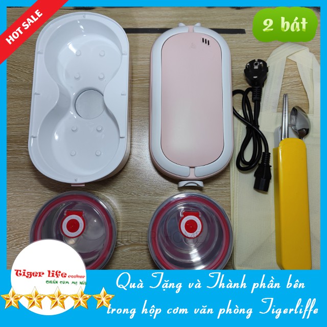 Giới thiệu Hộp Cơm Cắm Điện Hâm Nóng Tigerlife 2022 - MInistyle Tặng Bộ Đũa, Túi Xách, 4 Bát Inox, Giữ Nhiệt, Hâm Nóng Và Nấu