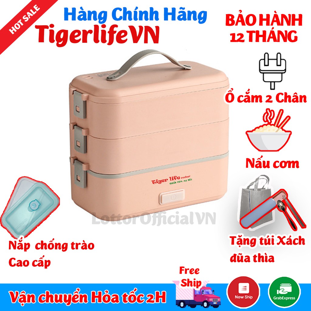 Hộp Cơm cắm Điện, Hộp cơm Giữ nhiêt và nấu 1, 2, 3 Tầng Tigerlife Phân Phối bh 12 tháng lỗi 1 đổi 1 tặng full đồ