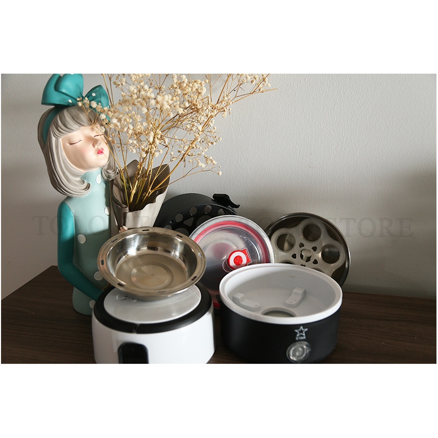- Hộp cơm giữ nhiệt có chức năng nấu, hâm nóng, hấp trứng và thức ăn khác.