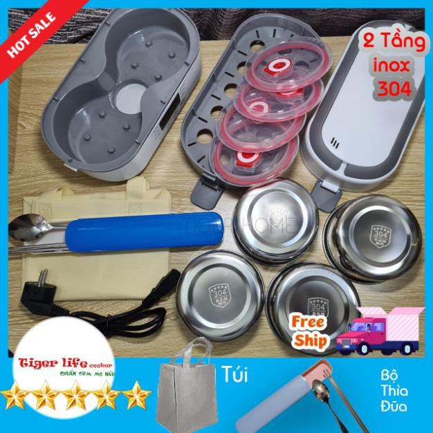 Hộp cơm Cắm Điện, Hộp cơm văn phòng Nấu và Hâm TigerLife Cảm ứng tự động hẹn giờ cao cấp Bh 12 Tháng Tặng full đồ dùng