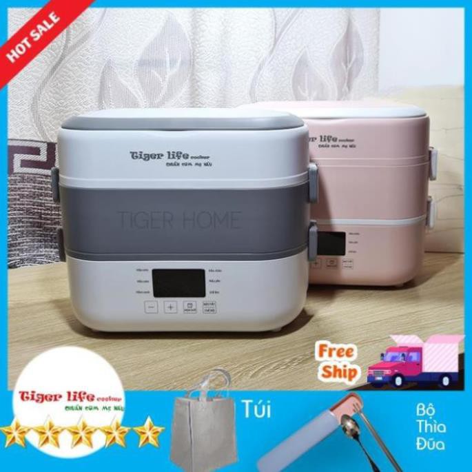 Hộp cơm Cắm Điện, Hộp cơm văn phòng Nấu và Hâm TigerLife Cảm ứng tự động hẹn giờ cao cấp Bh 12 Tháng Tặng full đồ dùng
