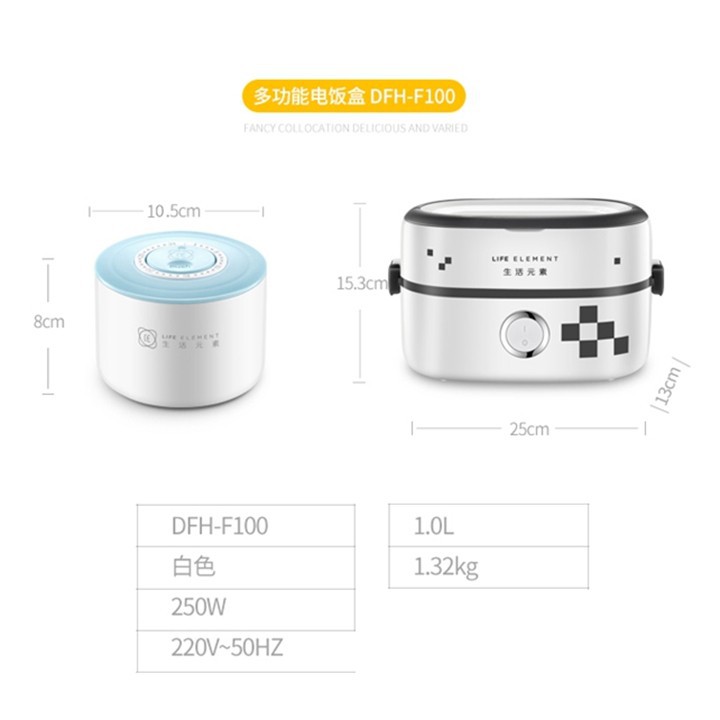 Hộp cơm cắm điện Life element DFH-F100, 1 tầng 2 bát gốm sứ, nấu chín, hâm nóng và giữ nhiệt