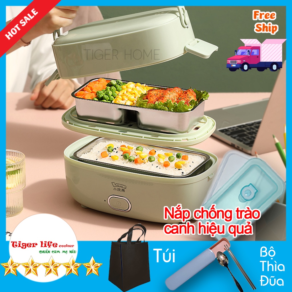 Thiết Bị Điện Gia Dụng > Đồ gia dụng nhà bếp > Nồi cơm điện || Hộp cơm cắm điện Lottor - Tigerlife tầng 3 ngăn, nấu chín, hâm nóng và giữ nhiệt cho thức ăn Tặng Túi Xách Bộ đũa thìaCòn hàng
