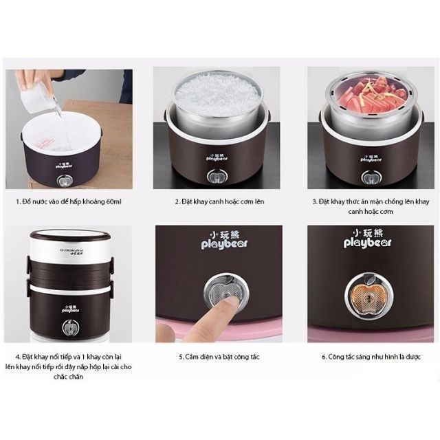 Thiết Bị Điện Gia Dụng > Đồ gia dụng nhà bếp > Nồi cơm điện || Hộp cơm cắm điện Playbear 3 tầng DFH-2019Còn hàng