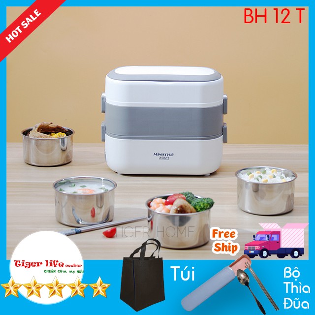 Hộp Cơm Cắm Điện Tigrlife Tặng Kèm Bộ ĐũaCắm Điện 3 Tầng, 4 Bát Inox, Giữ Nhiệt, Hâm Nóng Và Nấu Chín Thức Ăn