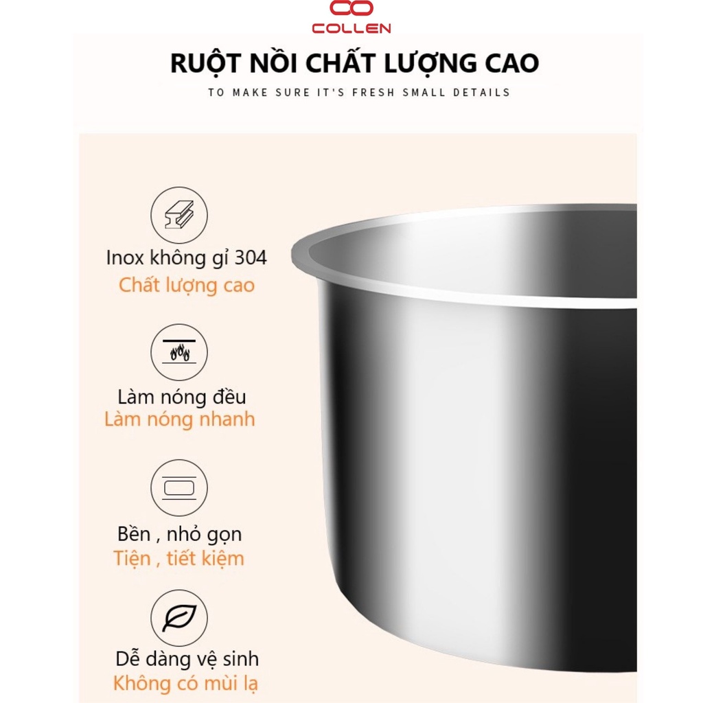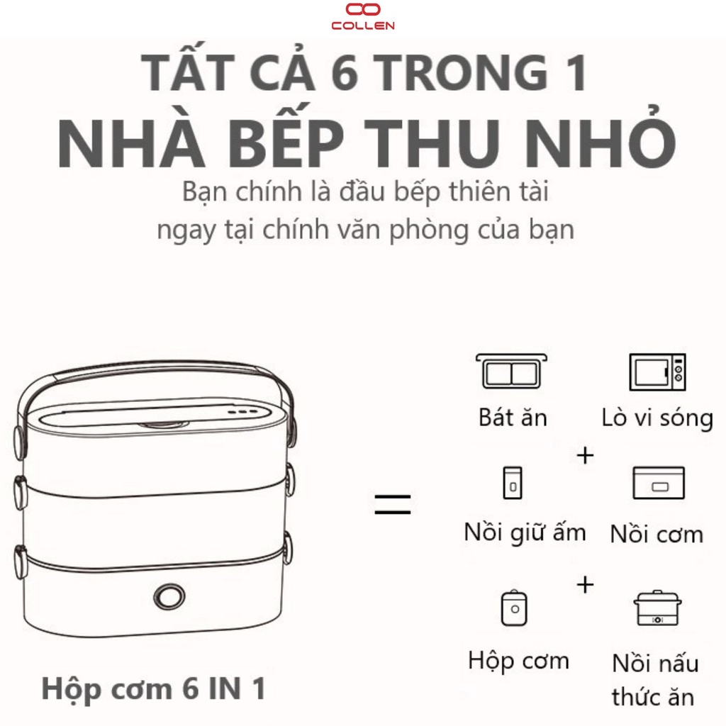 Thiết Bị Điện Gia Dụng > Đồ gia dụng nhà bếp > Nồi cơm điện || hộp cơm cắm điện văn phòng 2 tầng 4 ruột nồi inox có thể nấu ăn, giữ nhiệt, hâm nóng, hộp cơm 6in1 COLLEN LIFECòn hàng