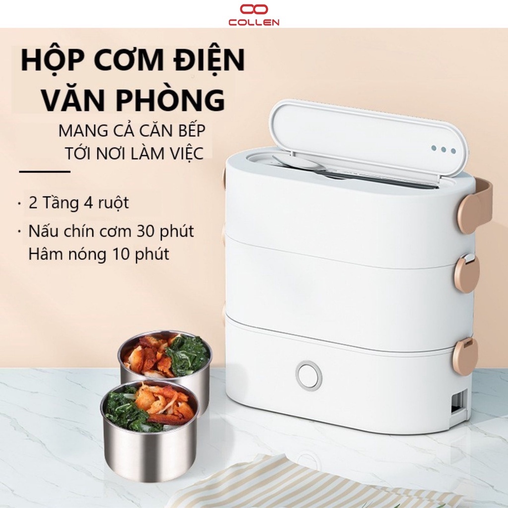 hộp cơm cắm điện văn phòng 2 tầng 4 ruột nồi inox có thể nấu ăn, giữ nhiệt, hâm nóng, hộp cơm 6in1 COLLEN LIFE