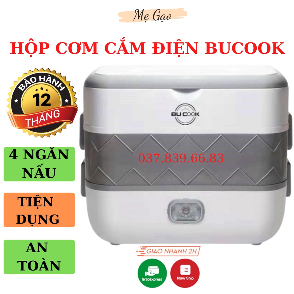 Hộp Cơm Cắm Điện Văn Phòng 2 Tầng Bucook Mẹ Gạo, hộp đựng cơm cắm điện văn phòng 4 ngăn inox bucook tiện dụng an toàn