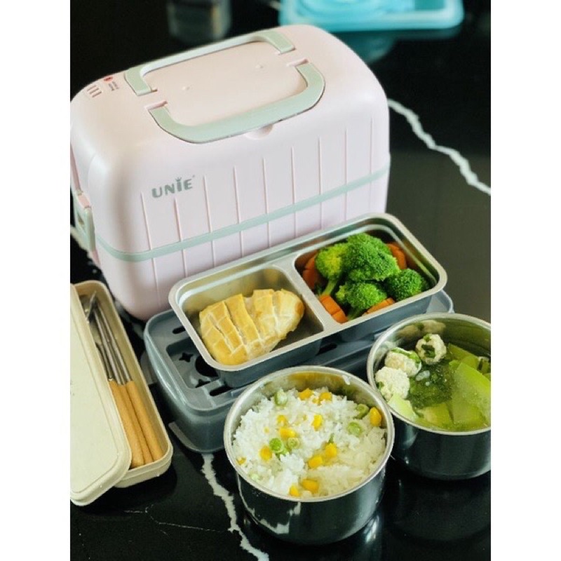 Thiết Bị Điện Gia Dụng > Đồ gia dụng nhà bếp > Nồi cơm điện || Hộp cơm cắm điện văn phòng UNIE UV 300W, 3 khay inox kèm bộ thìa đũa - Hàng chính hãngCòn hàng