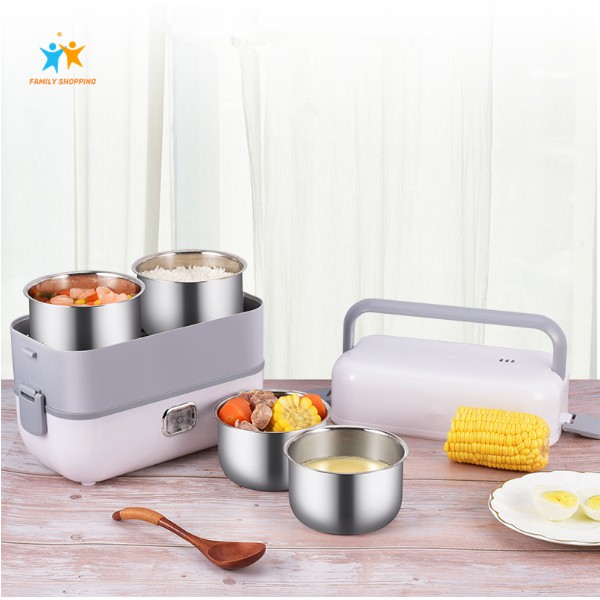 Giới thiệu Hộp cơm cắm điện văn phòng tự nấu hộp cơm hâm nóng thức ăn 2 tầng 4 khay inox 304 có nắp chống tràn