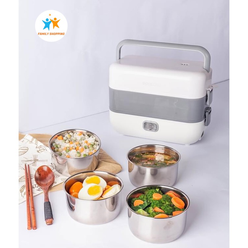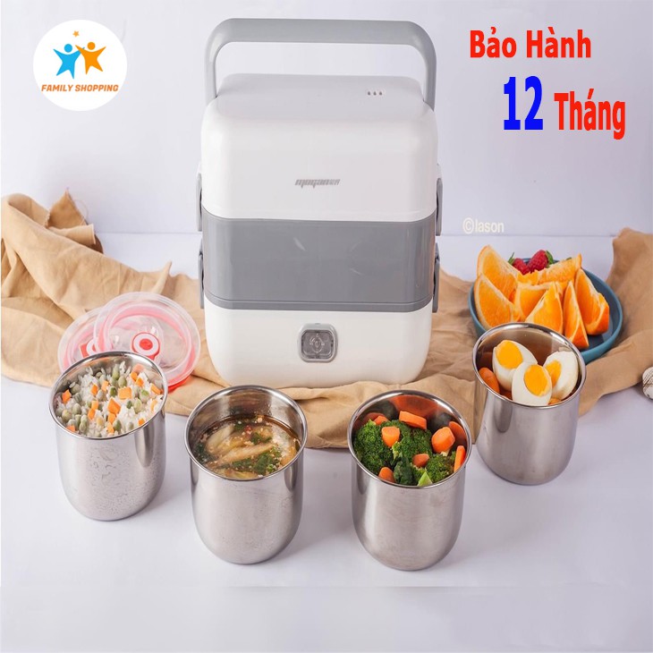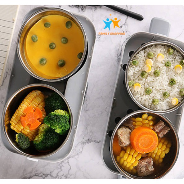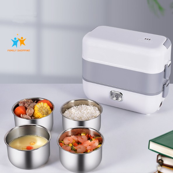 Hộp cơm cắm điện văn phòng tự nấu hộp cơm hâm nóng thức ăn 2 tầng 4 khay inox 304 có nắp chống tràn