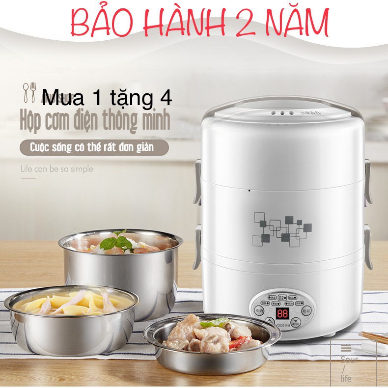 Hộp cơm cắm điện Yoice, 2.0 lít, chức năng hẹn giờ, nấu chín, hâm nóng và giữ nhiệt thức ăn, inox 304
