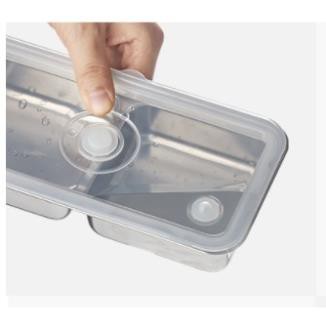 - Khi mang đến công ty sử dụng, có thể bỏ lại phần vỏ nhựa bên ngoài, và chỉ cần mang khay inox về.