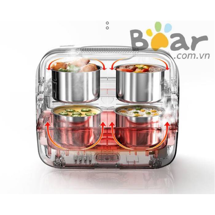 Hộp cơm điện 4 khay inox 2 tầng Bear DFH-B17