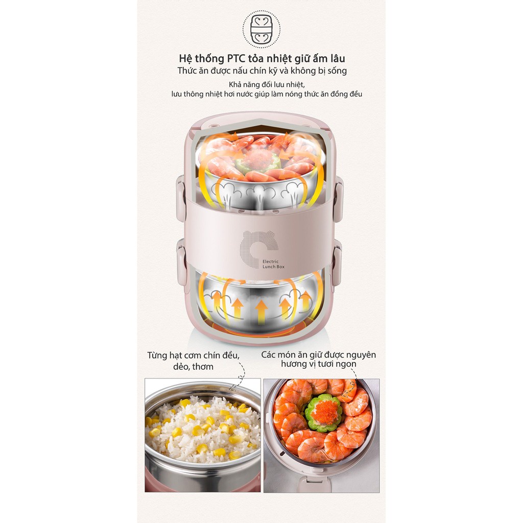 Hộp cơm điện cầm tay đa năng Bear DFH-B20S6 3 khay dung tích lớn thép không gỉ an toàn cho sức khỏeGIỚI THIỆU SẢN PHẨM: