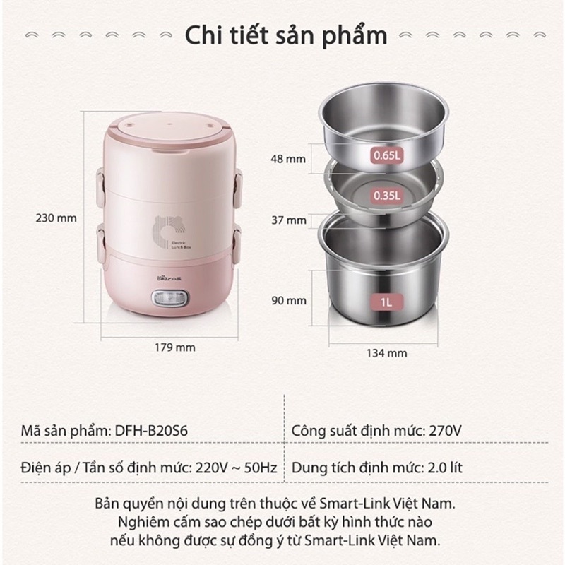 Hộp Cơm Điện Đa Năng 2L Cầm Tay Bear Chính Hãng DFH-B20S6 - Bảo Hành 18 Tháng