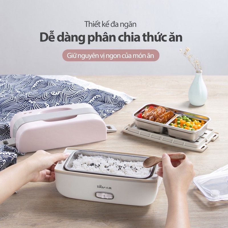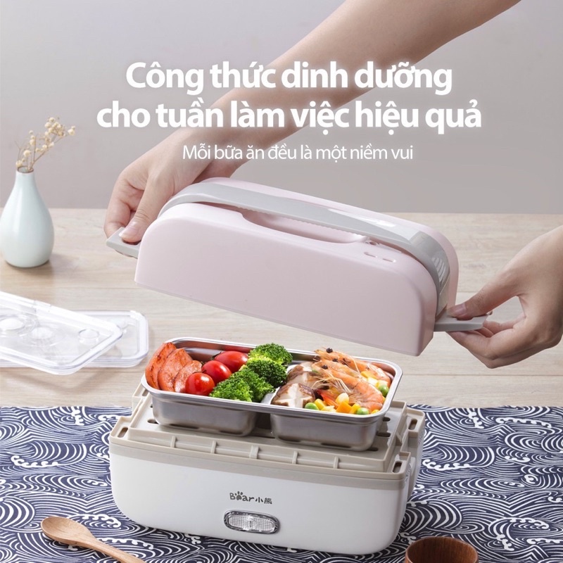 Hộp cơm điện giữ nhiệt Inox 304 hâm nóng cơm, thức ăn chỉ 10p, Hộp cơm điện Bear DFH-B10J2 BH18 tháng chính hãng