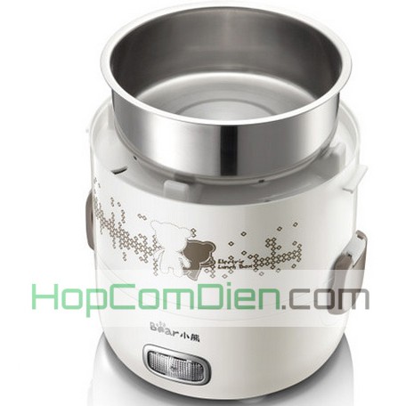Hộp cơm điện BEAR 3 ngăn inox 304 cao cấp hút chân không cực chặt và khít trắng bầu
