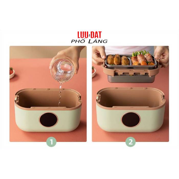 Hâm nóng cách thủy là đổ nước vào khay điện cắm điện và nước sôi bốc hơi làm nóng hâm nhanh chỉ khoảng 10 phút là được ăn và nếu nấu cơm thì mất khoảng 30-40 phút là có cơm nóng ăn đồng thời đồ ăn để bên trên vẫn hâm nóng ăn được trong khi nấu rất tiện lợi và nhanh chóng