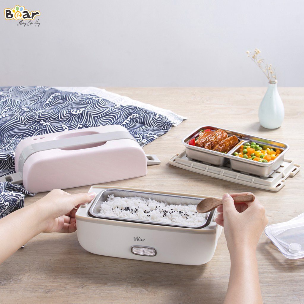 Hộp cơm giữ nhiệt và tự nấu B e a rHộp cơm điện B e a r có 2 chức năng: tự nấu chín và hâm nóng thức ăn. Hộp cơm điện B e a r hoạt động theo cơ chế cách thủy, nhiệt từ đáy hộp truyền lên, làm nóng nước và đẩy hơi lên phía trên làm chín thức ăn của từng tầng khay. Tùy theo từng loại thực phẩm và nhu cầu thời gian hoạt động sẽ khác nhau.