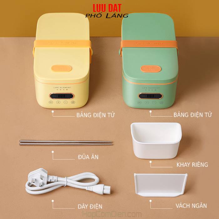 Hộp cơm cắm điện hâm nóng trực tiếp không phải đổ nước Life Element F58 màu xanh, F63 màu vàng công suất lớn vẫn giúp khách hâm lại đồ ăn nhanh chóng, đồng thời vẫn có thể giúp khách nấu lại canh thuận tiệnTHÔNG SỐ HỘP CƠM LIFE ELEMENT