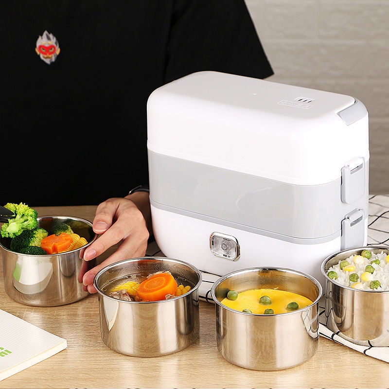 Hộp Cơm Giữ Nhiệt Cắm Điện Văn Phòng LUNCHBOX 4 Bát Inox, Giữ Nhiệt, Hâm Nóng Và Nấu Chín Thức Ăn