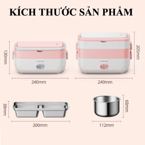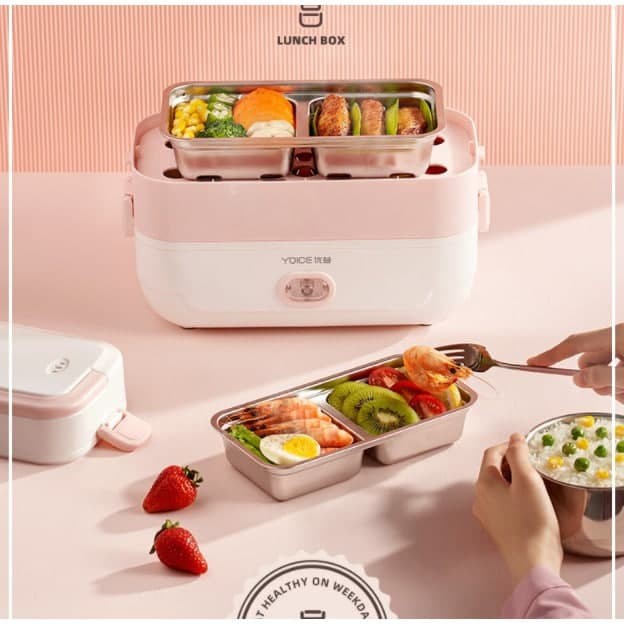 Hộp cơm hâm nóng - hộp cơm điện tiện lợi YOICE 3 tầng, khay inox không rỉ 200W - 2 LítĐẶT HÀNG ĐƯỢC TẶNG KÈM: ĐŨA, THÌA, MIẾNG RỬA BÁT